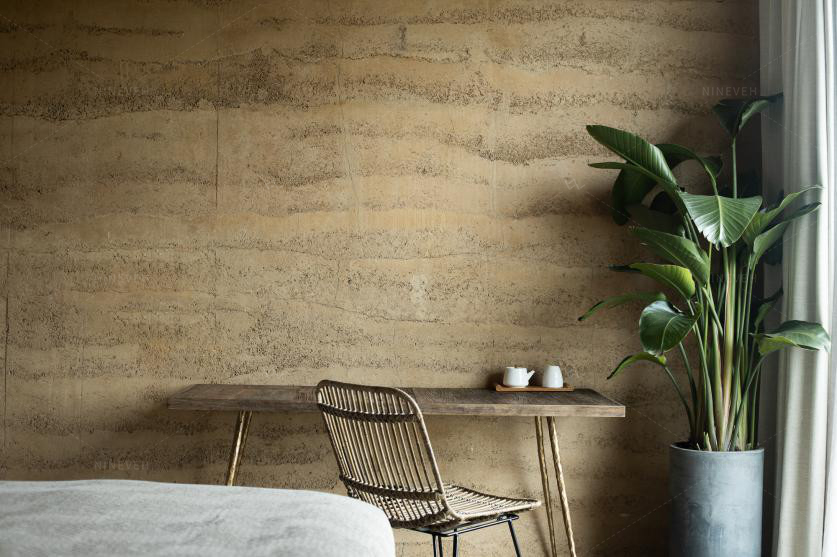 通过无雕琢的自然夯土、纹路